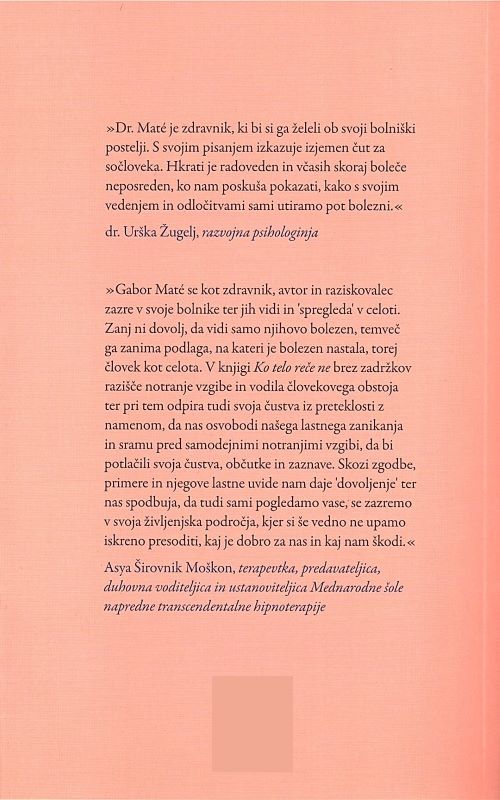 Gabor Mate je svetovno znani avtor, predavatelj, popotnik, raziskovalec in zdravnik, ki svoje bolnike vidi in “spregleda” v celoti. Ne zanima ga zgolj njihova bolezen, temveč tudi podlaga, na kateri je bolezen nastala.