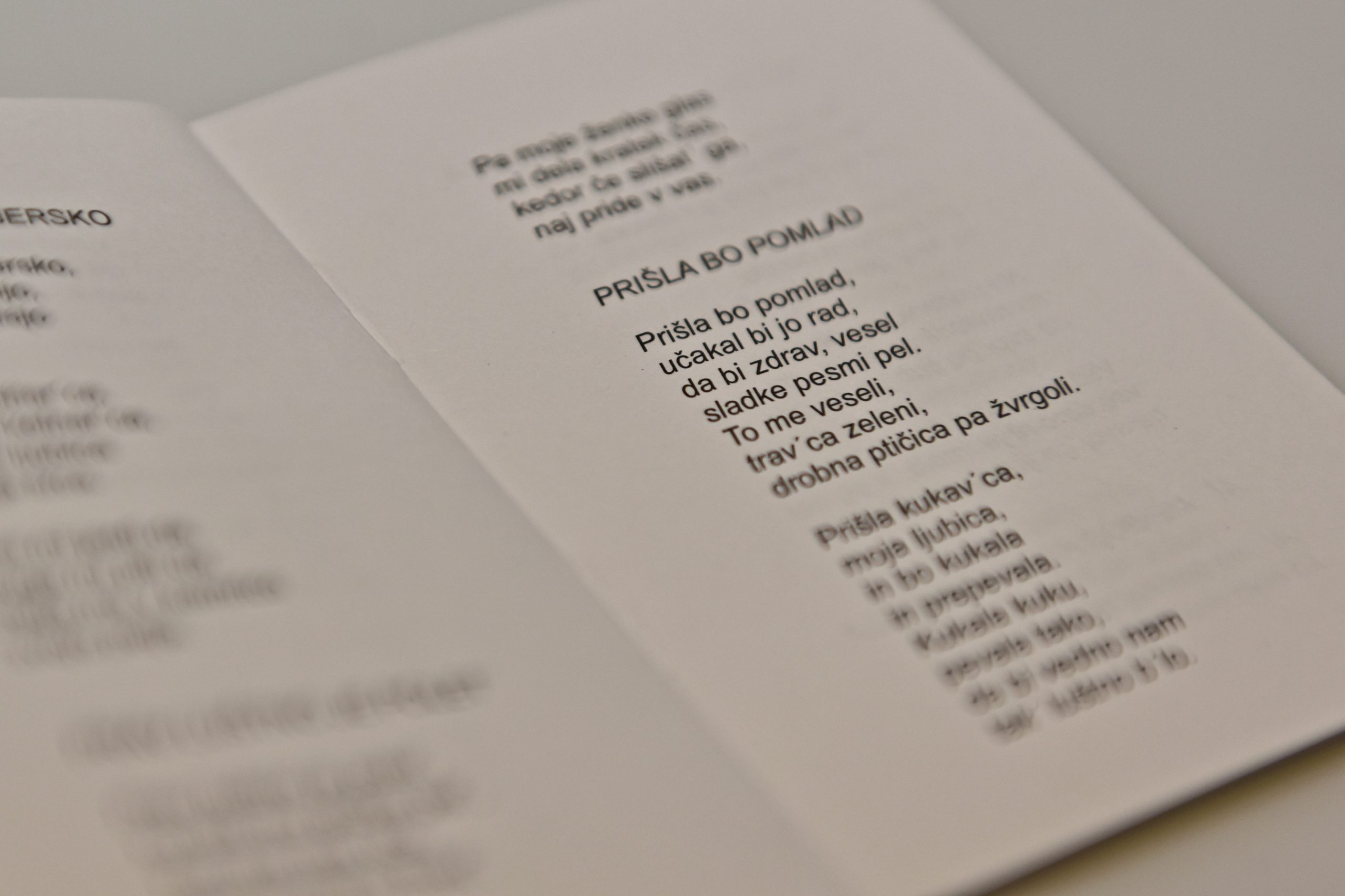 Knjižica z besedili slovenskih narodnih pesmi – za veselo pevsko družbo.
